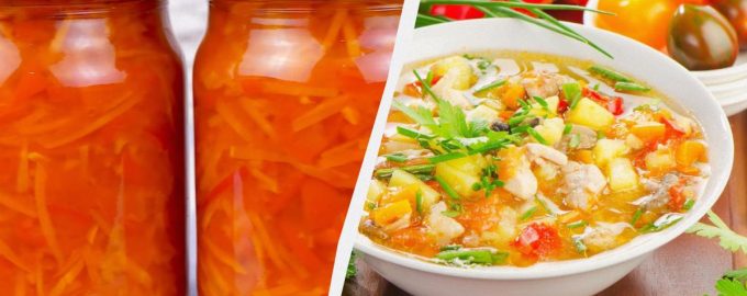 Adăugați piperul și fierbeți încă 10 minute. Supa dressing pentru iarnă din morcovi și ceapă și ardei este gata.