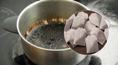 Se recomandă înmuierea oalelor și cratițelor în apă caldă, adăugarea plicurilor de ceai folosite și lăsarea timp de câteva ore.